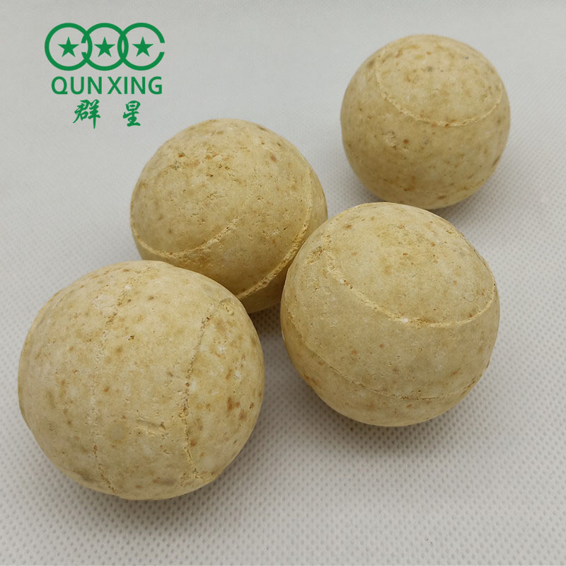 耐火資球是以工業(yè)氧化鋁,耐火粘十為主要原料,經科學成型高溫煅燒而成,它具有化學性能穩(wěn)定,機械強度高,使用周期長,耐高溫性能好的特點。耐火資球分為普通耐火球和高鋁耐火球。普通耐火球適用干硫酸和化肥行業(yè)的高低溫變換爐轉化爐加氣轉化器變換爐脫硫槽及甲烷化爐,起分散氣液,并支撐,要蓋和保護催化劑的作用,高鋁耐火球話用干尿毒,鋼鐵等行業(yè)的熱風爐加執(zhí)變換爐等設備。